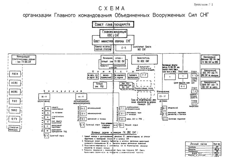 Утвердить структуру и численность Главного командования Объединенных Вооруженных Сил Содружества (ГК ОВС СНГ).