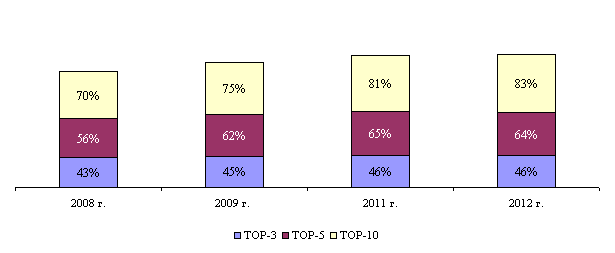 Уровень концентрации оптового рынка лекарств в России, по оценкам экспертов, имеет очевидную динамику роста. В 2011 году доля ТОР-10 дистрибьюторов составила около 83 %; доля ведущих дистрибьюторов, входящих в ТОР-3, − 46 %.