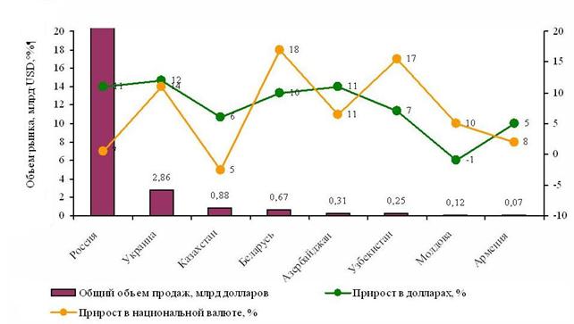 2. Проведенное исследование показало, что фармацевтический рынок государств − участников СНГ является динамично развивающимся сектором экономики, для которого характерны во многом схожие проблемы развития конкуренции, негативно влияющие на доступность лекарств населению этих стран. В настоящее время конкуренция на фармацевтических рынках государств − участников СНГ развита недостаточно.