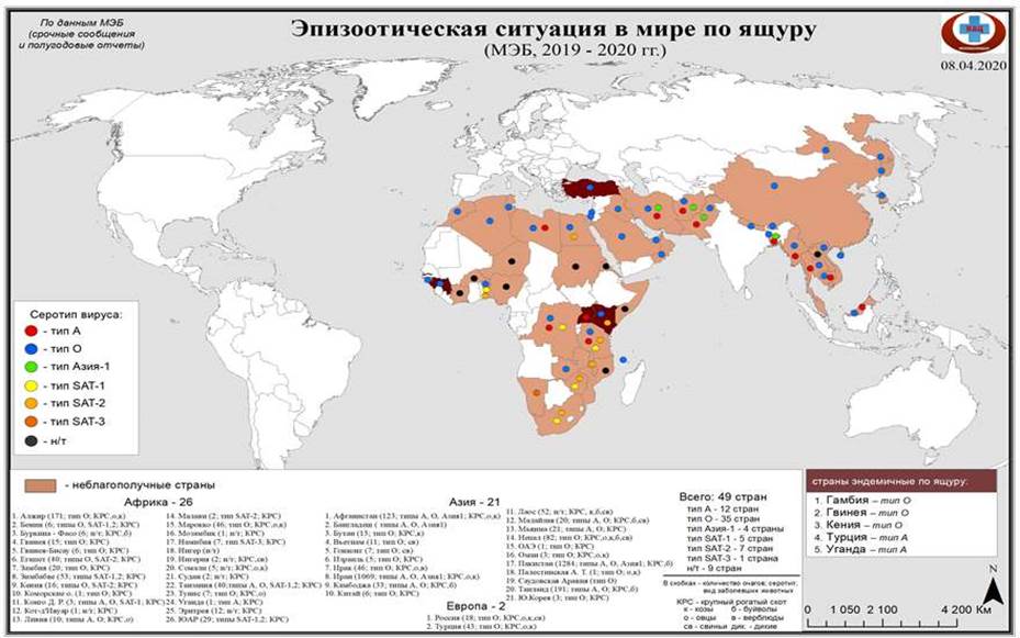 2.1. Современная эпизоотическая ситуация по ящуру в мире