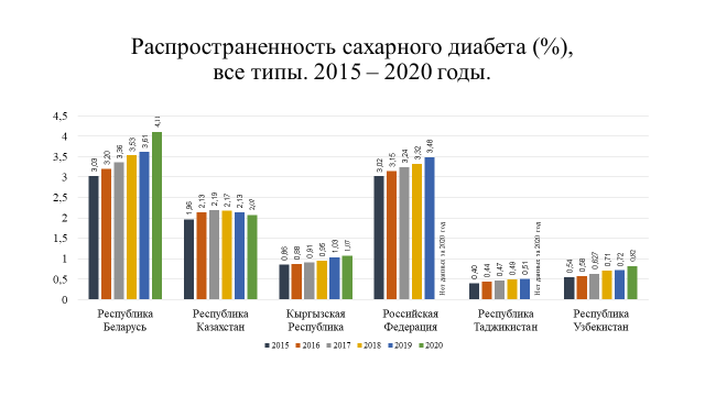 Анализ реализации Программы свидетельствует о том, что сахарный диабет остается наиболее опасным вызовом всему мировому сообществу и приоритетом систем здравоохранения государств – участников СНГ.