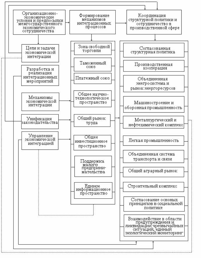 Концепция базируется на принятых основных положениях и документах Содружества Независимых Государств. В ней также использованы результаты научных исследований и практических разработок проблем интеграции, выполненных в разных государствах – участниках Содружества. Структура Концепции экономического интеграционного развития СНГ приведена на схеме 1.