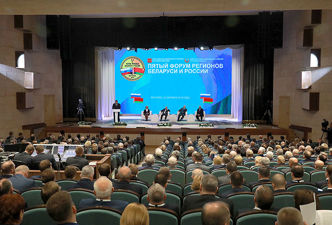 12 октября 2018 года Председатель Исполнительного комитета СНГ Сергей Лебедев принял участие в мероприятиях V Форума регионов Беларуси и России в Могилеве.
