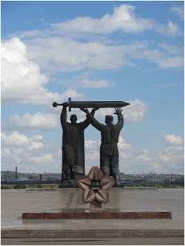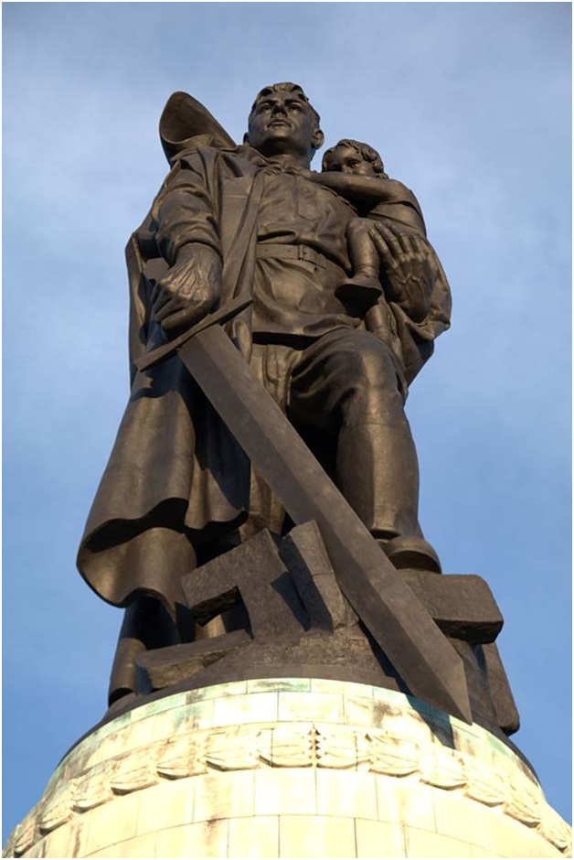 Монумент является центральной частью триптиха, состоящего из монументов "Тыл - фронту" в Магнитогорске, "Родина-мать зовет" в Волгограде и "Воин-освободитель" в берлинском Трептов-парке. Подразумевается, что меч, выкованный на берегу Урала, потом был поднят Родиной-матерью в Сталинграде и опущен после Победы в Берлине. В эскизе памятника солдат держал в свободной руке автомат, но по предложению И.В.Сталина Е.В.Вучетич заменил автомат на меч, которым разрублена свастика. Монумент "Воин-освободитель" является символом победы советского народа в Великой Отечественной и Второй мировой войне, и освобождения народов Европы от нацизма.