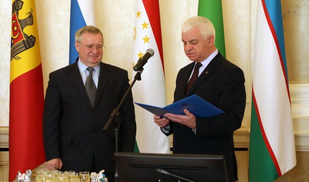 Первый заместитель Председателя Исполнительного комитета Виктор Гуминский вручил Николаю Демчуку Грамоту Исполкома СНГ за активную и плодотворную работу по укреплению Содружества Независимых Государств.