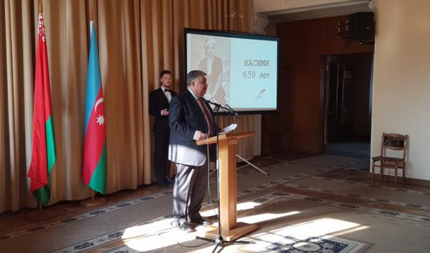 В соответствии с распоряжением Президента Азербайджанской Республики Ильхама Алиева «О праздновании 650-летнего юбилея великого азербайджанского поэта Имадеддина Насими» посольством Азербайджана в Республике Беларусь в «Доме дружбы» Минска был проведен музыкально-поэтический вечер, посвященный памяти и творчеству великого поэта.