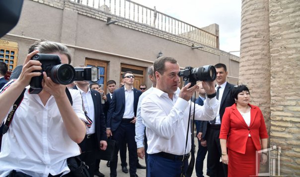 Председатель Правительства Российской Федерации Дмитрий Медведев в сопровождении Премьер-министра Республики Узбекистан Абдуллы Арипова 30 мая осмотрел Хиву.