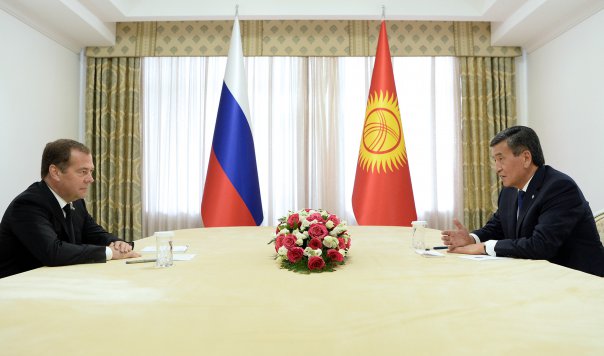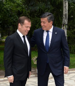 Президент Кыргызской Республики Сооронбай Жээнбеков 9 августа в г. Чолпон-Ата Иссык-Кульской области встретился с Председателем Правительства Российской Федерации Дмитрием Медведевым, прибывшим в Кыргызстан для участия в заседании Евразийского межправительственного совета.