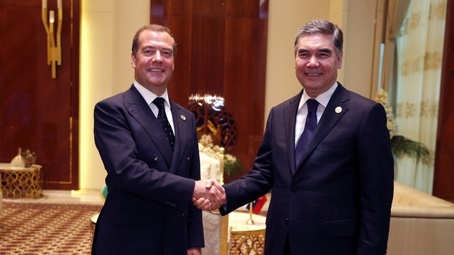 Поблагодарив за оказанный радушный приём и теплые пожелания, гость передал Президенту Гурбангулы Бердымухамедову слова приветствия от Президента Российской Федерации Владимира Путина. Отметив, что нынешняя встреча – хорошая возможность для обсуждения первоочередных задач взаимодействия, Дмитрий Медведев поздравил туркменского лидера с проведением столь значимого форума, собравшего на туркменском берегу Каспия представителей не только стран региона, но ближнего и дальнего зарубежья.