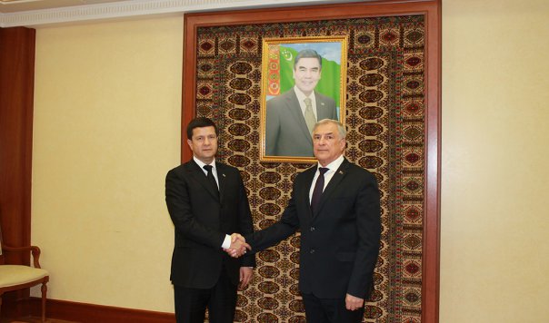 Сегодня здесь состоялась встреча Чрезвычайного и Полномочного Посла Республики Беларусь в Туркменистане Олега Табанюхова с министром торговли и внешнеэкономических связей Туркменистана Амандурды Ишановым.