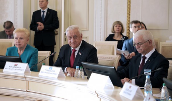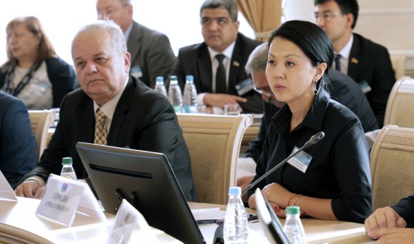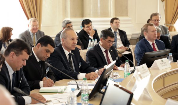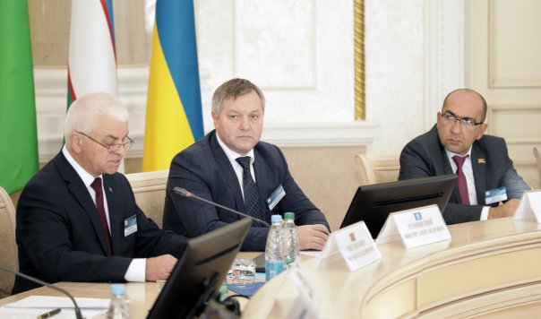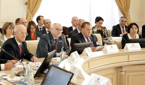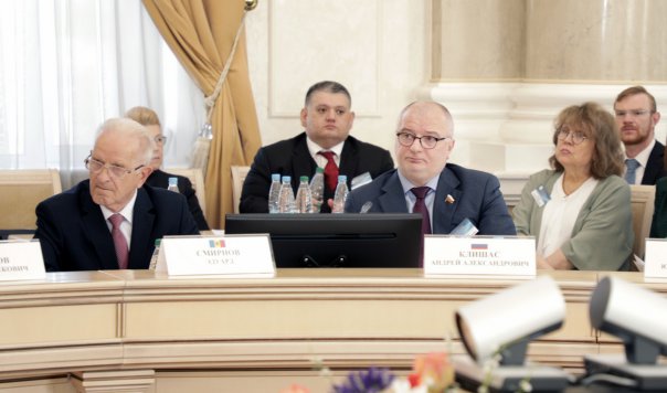 Председатель Комитета Совета Федерации Федерального Собрания Российской Федерации по конституционному законодательству и государственному строительству А. Клишас зачитал приветственный адрес Председателя Совета Межпарламентской Ассамблеи СНГ, Председателя Совета Федерации Федерального Собрания Российской Федерации В. Матвиенко.