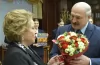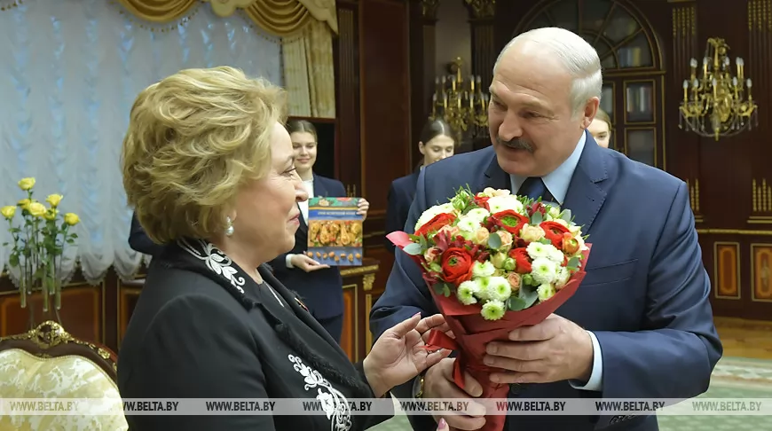 Александр Лукашенко подарил Валентине Матвиенко букет белорусских цветов, икону Святой Валентины Минской и, учитывая пристрастие гостьи к кулинарии, книгу "Смак беларускай кухнi".