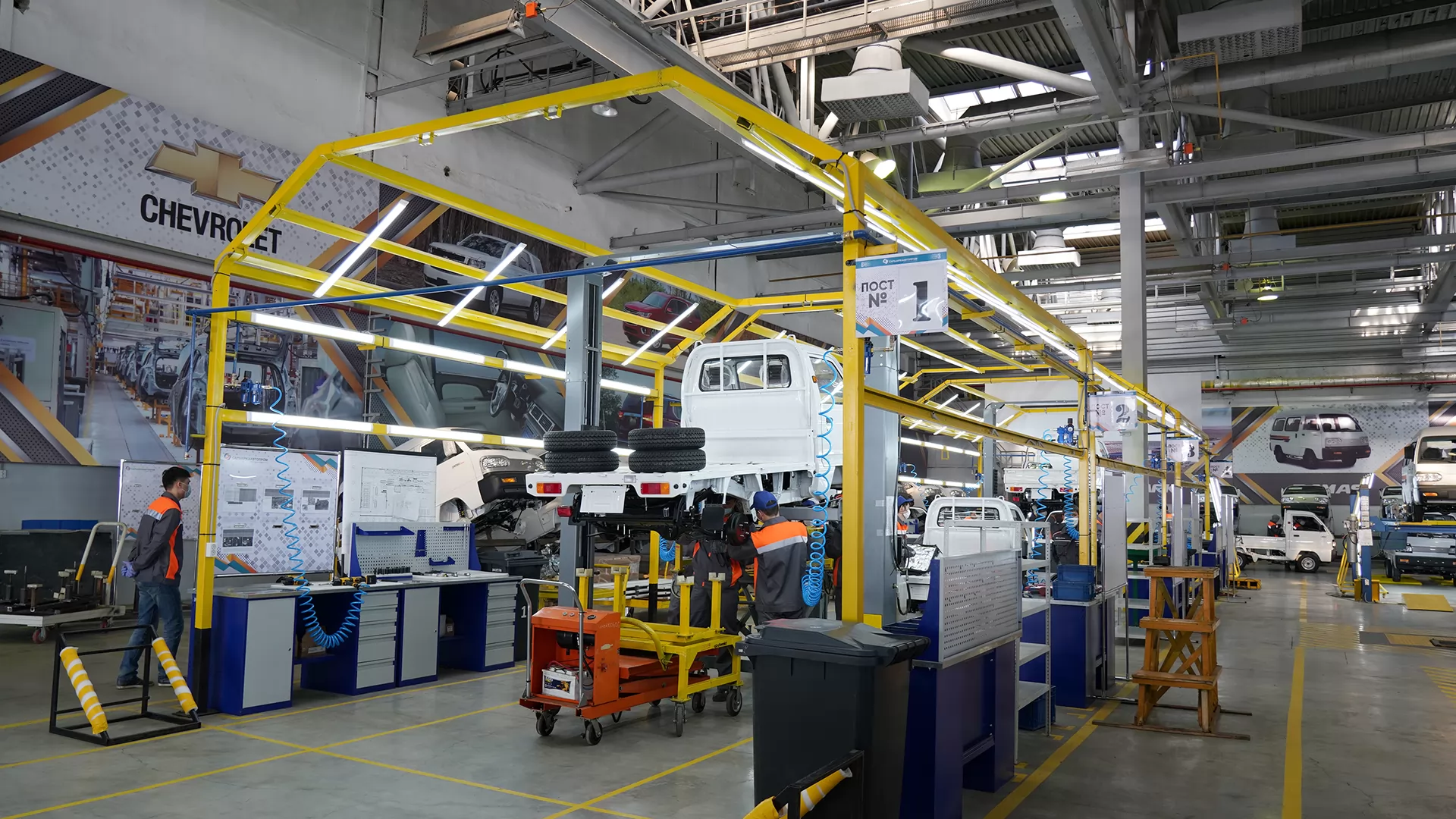 На новой производственной линии будут собирать несколько моделей автомобиля марки «Chevrolet» – Damas, Labo, Trailblazer, Malibu, Spark и др. Доступная конечная стоимость автобуса «Chevrolet Damas» и грузовой машины «Chevrolet Labo» составит порядка 3 млн тг, что повышает их привлекательность для малого и среднего бизнеса в торговой, логистической, сельскохозяйственной и других сферах.