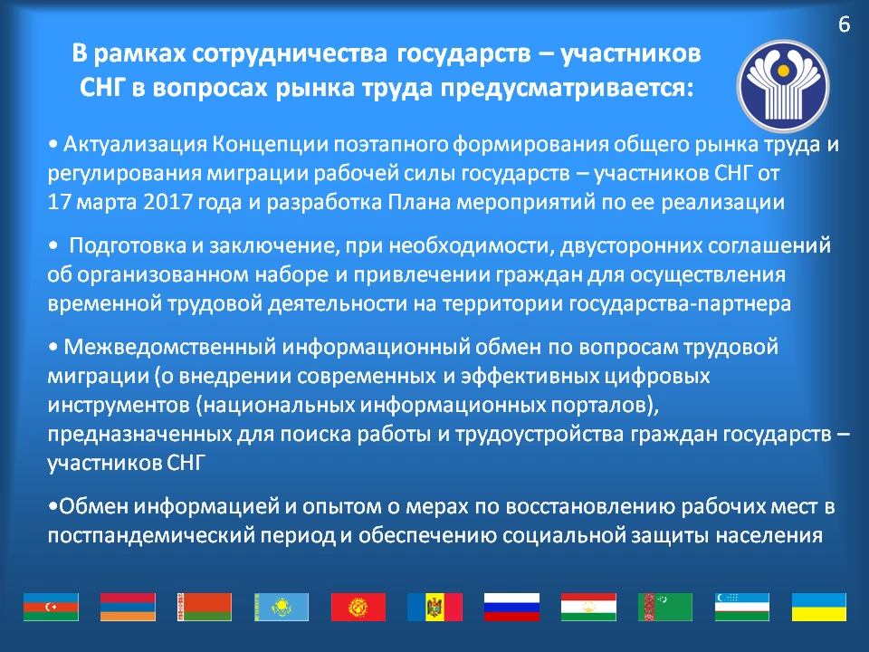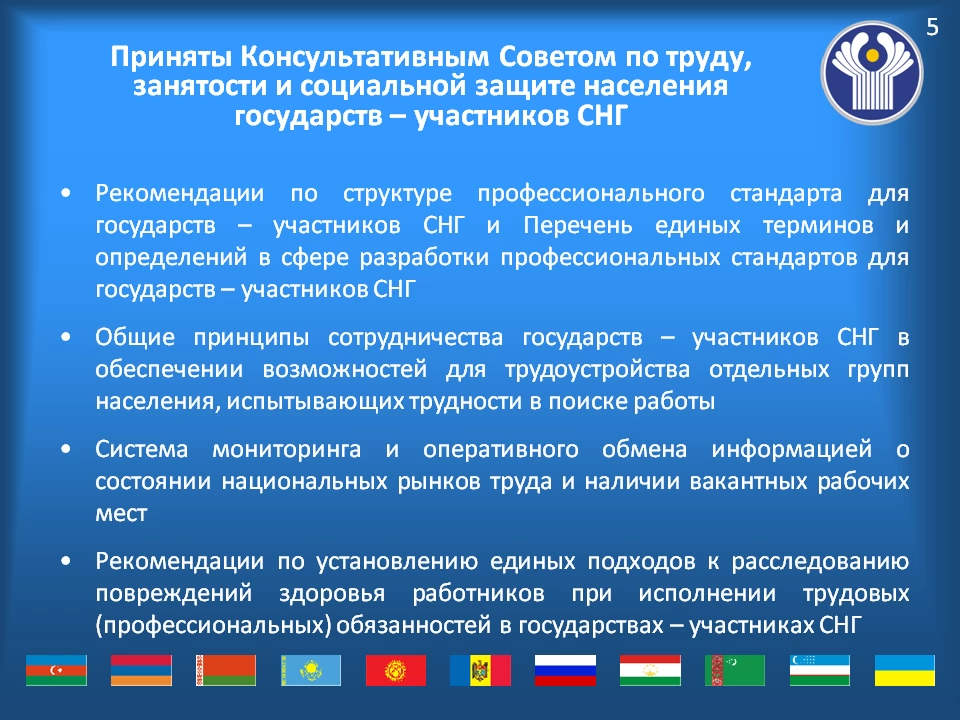 Члены рабочей группы ознакомились с опытом работы российской стороны по формированию аналитической базы мониторинга востребованности профессий с использованием технологии больших данных, одобрили представленные Всероссийским научно-исследовательским институтом труда Минтруда России подходы к разработке и актуализации межгосударственного классификатора наименований профессий рабочих и должностей служащих. В этой связи странам рекомендовано направить свои предложения по уточнению представленных подходов, которыми впоследствии будет дополнен классификатор. Готовый проект документа предполагается рассмотреть на заседании Консультативного Совета по труду, занятости и социальной защите населения.