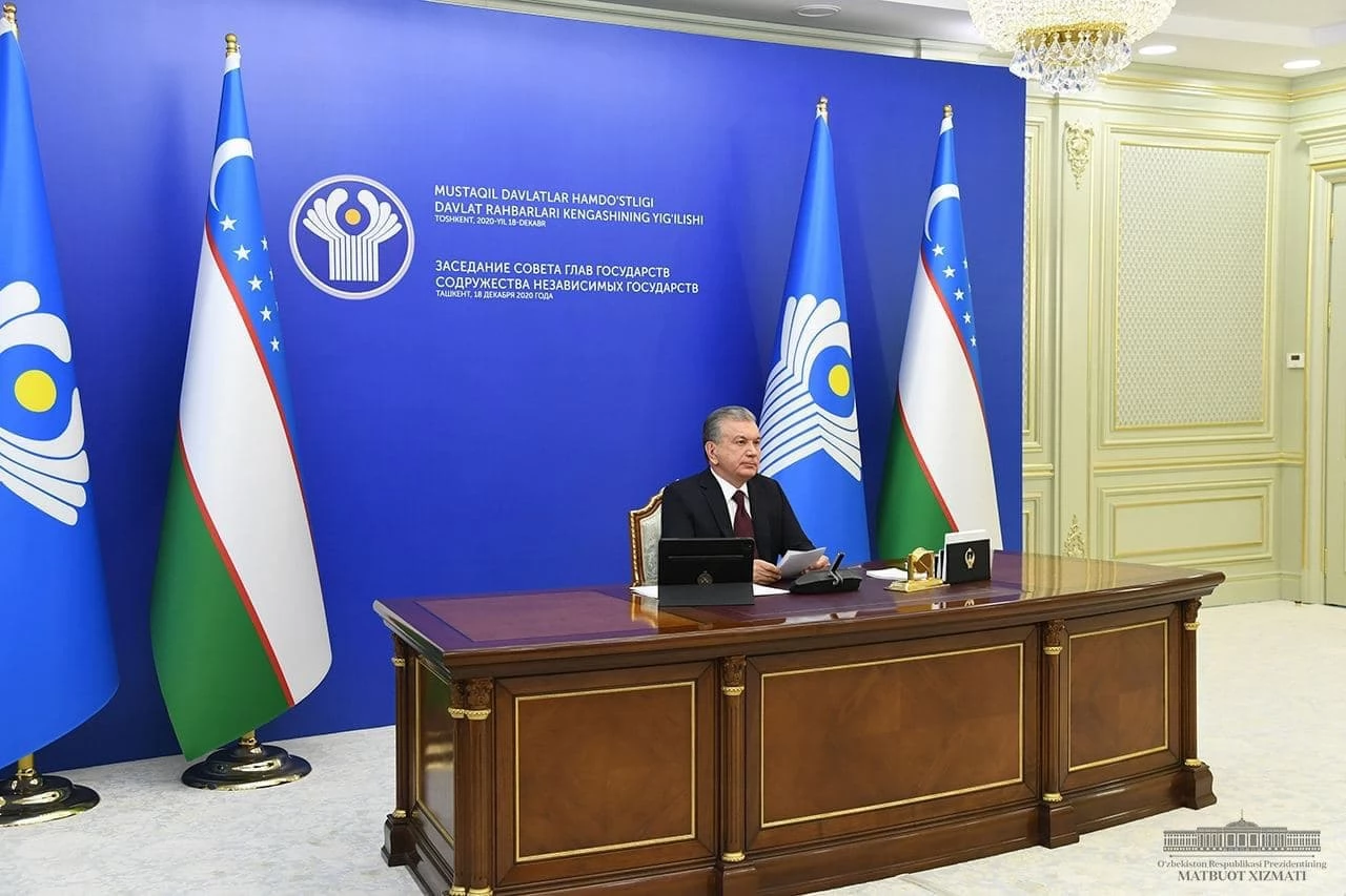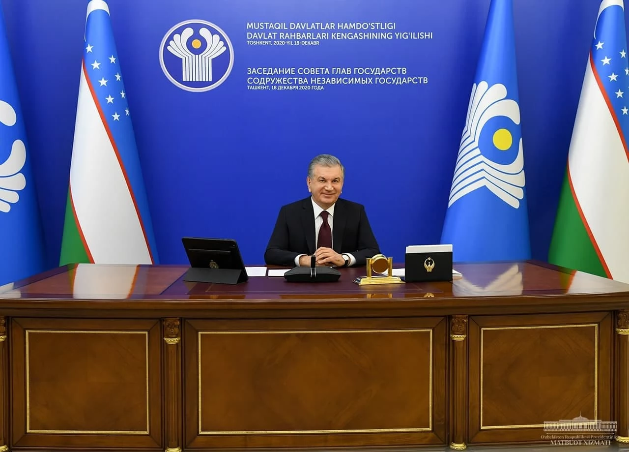 18 декабря 2020 года под председательством Президента Республики Узбекистан Шавката Мирзиёева прошло заседание Совета глав государств Содружества Независимых Государств в формате видеоконференции. В нем приняли участие делегации всех государств Содружества, кроме Армении и Украины.