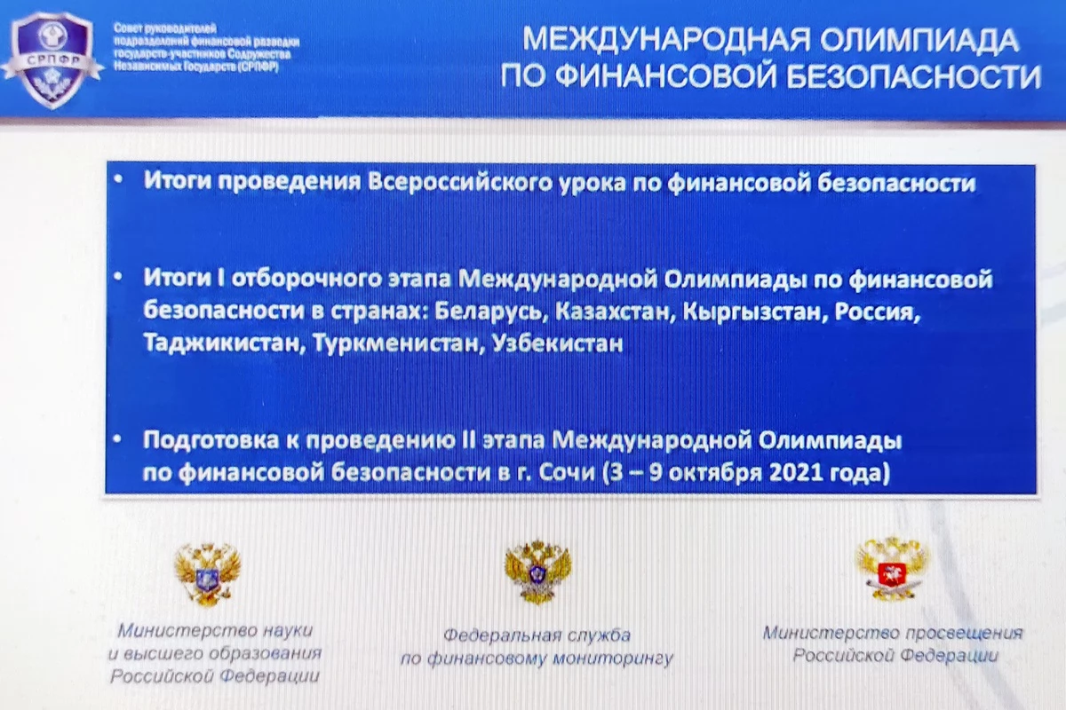 Кроме того, участники заседания рассмотрели ход проведения Международной олимпиады по финансовой безопасности. Первый, отборочный этап олимпиады состоялся в конце мая. В нем приняли участие студенты из Беларуси, Казахстана, Кыргызстана, России, Таджикистана, Узбекистана и Туркменистана, а также российские школьники 8 – 10 классов. Они состязались в знаниях по нескольким направлениям в областях финансовой безопасности и финансового мониторинга. Так, среди студентов – участников олимпиады определяли лучших в сферах экономики, финансов и кредита, экономической безопасности, юриспруденции, информационной безопасности, международных отношений. Среди школьников выбирали знатоков математики и информатики (IT, программирование, искусственный интеллект), обществознания и права, экономики. Победителями отборочного этапа среди школьников стали 103 человека, среди студентов – 332 человека. Именно они и примут участие в финальном этапе олимпиады, который пройдет 3 – 9 октября в Сочи.