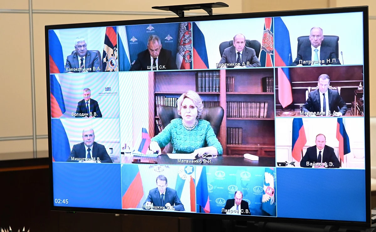 В совещании приняли участие премьер-министр Михаил Мишустин, председатель Совета Федерации Валентина Матвиенко председатель Государственной думы Вячеслав Володин, заместитель председателя Совета Безопасности Дмитрий Медведев, руководитель Администрации президента РФ Антон Вайно, секретарь Совета безопасности Николай Патрушев, министр внутренних дел Владимир Колокольцев, министр иностранных дел Сергей Лавров, министр обороны Сергей Шойгу, директор Федеральной службы безопасности Александр Бортников, директор Службы внешней разведки Сергей Нарышкин.