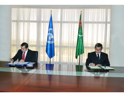 С туркменской стороны документ подписал Министр иностранных дел Туркменистана Рашид Мередов. Со стороны ООН под документом подпись поставил Постоянный координатор ООН в Туркменистане Дмитрий Шлапаченко.