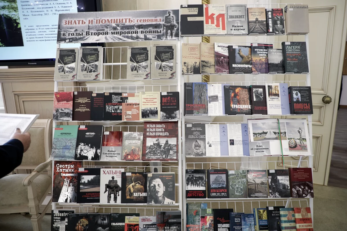 Демонстрируемые на выставке книжные издания – это страшный рассказ о преступлениях нацистов и их пособников по отношению к мирному населению Советской Белоруссии. Книги о Тростенце, Озаричах, Красном береге – населенных пунктах, которые в годы войны стали «фабриками смерти» – это хорошая прививка от человеческого равнодушия, напоминание о трагических уроках истории.