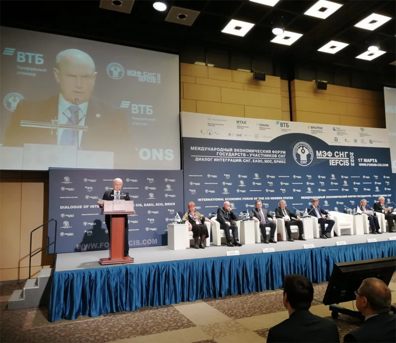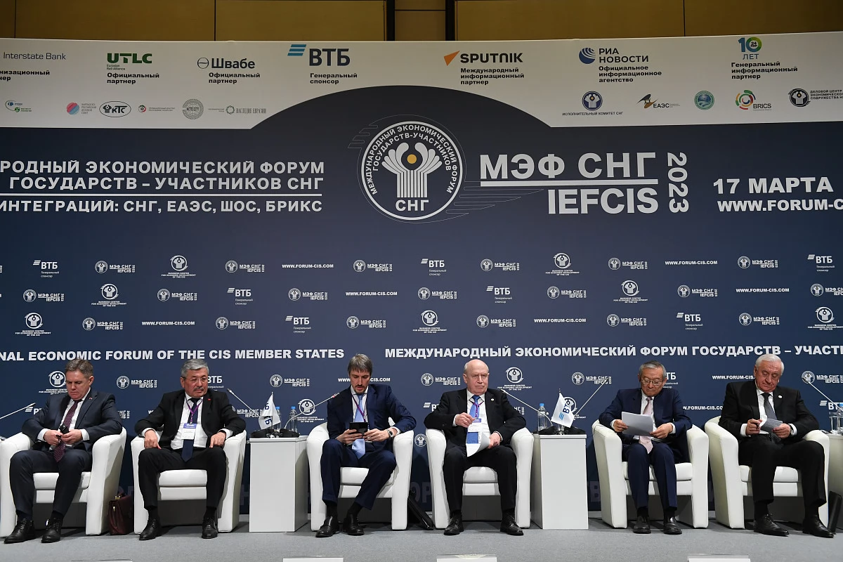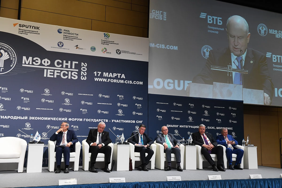 17 марта 2023 г. в Москве в Центре международной торговли состоялось пленарное заседание ХV Международного экономического форума государств – участников СНГ «Диалог интеграций: СНГ, ЕАЭС, ШОС, БРИКС». С обращением к его участникам выступил Генеральный секретарь СНГ Сергей Лебедев.