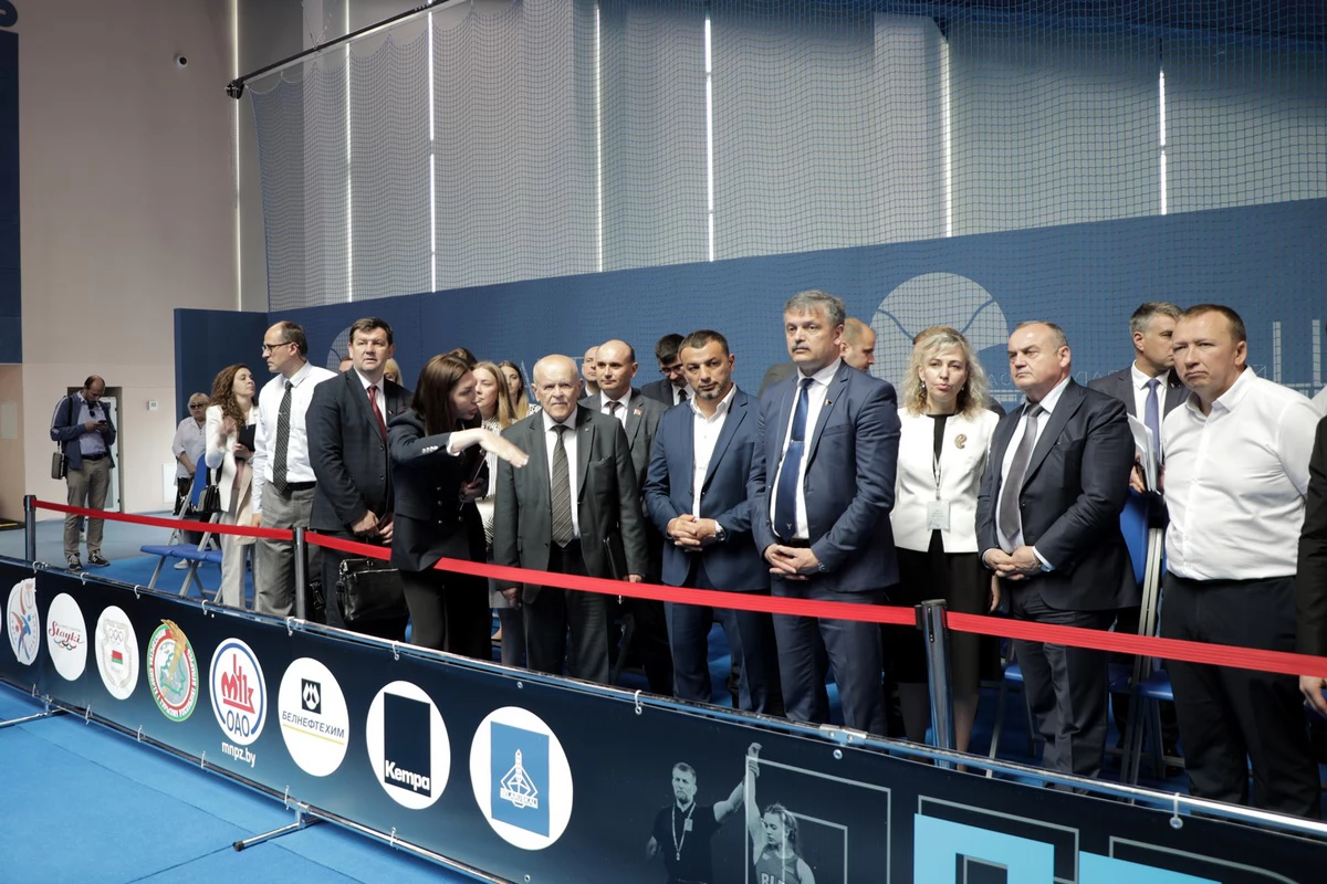 Особое внимание уделили теннисному манежу, где пройдут состязания по греко-римской, вольной и женской борьбе. В день визита на арене проходило первенство Беларуси по греко-римской борьбе – тестовые соревнования к II Играм стран СНГ.