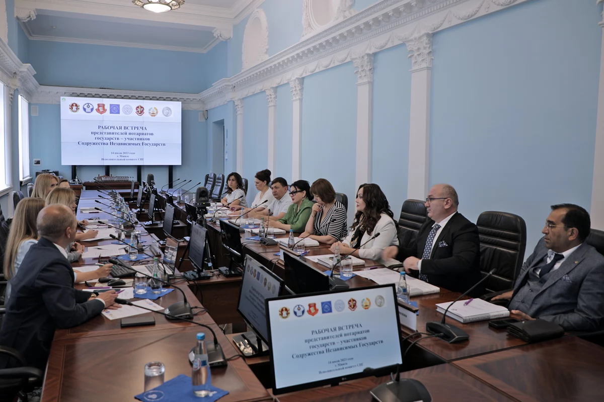 14 июля 2023 года в штаб-квартире СНГ в рамках мероприятий, проводимых базовой организацией государств – участников СНГ в сфере нотариальной деятельности – Белорусской нотариальной палатой, состоялась рабочая встреча нотариатов стран Содружества.
