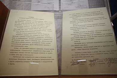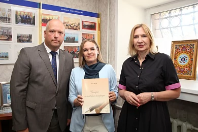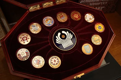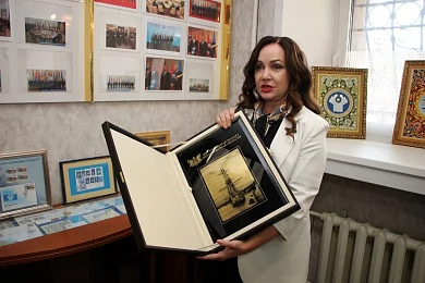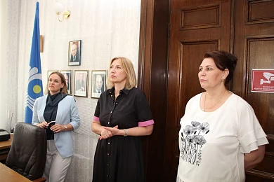 В завершение для участников рабочей встречи провели экскурсию по Музею истории Содружества Независимых Государств, который создан в Исполнительном комитете СНГ. Здесь представлены фотоматериалы и учредительные документы об образовании СНГ. На стендах можно также увидеть экспонаты по направлениям сотрудничества государств-участников Содружества, в том числе и в правовой сфере. Отдельное место на стенде Музея занимает сувенир Белорусской нотариальной палаты, который был подарен 25 мая 2022 года. Не обошлось без презентов и на этот раз – председатель БНП Наталья Борисенко любезно передала в дар книгу о могилевском нотариате, а президент Нотариальной палаты Воронежской области России Анна Чугунова – литографию первого линейного корабля петровской эпохи.