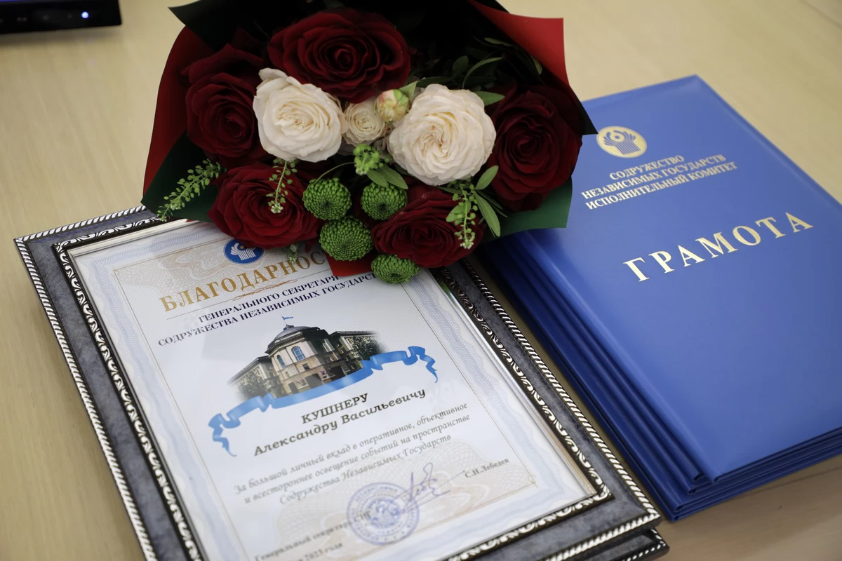 Благодарность Генерального секретаря СНГ объявлена фотокорреспонденту учреждения Администрации Президента Республики Беларусь «Издательский дом «Беларусь сегодня» Александру Кушнеру, администратору телевидения студии телевидения Национального филиала (представительства) Межгосударственной телерадиокомпании «Мир» в Республике Беларусь Рите Корнюшенко, ведущему фотокорреспонденту республиканского унитарного предприятия «Белорусское телеграфное агентство» Сергею Шелегу.