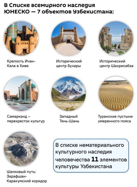 В 2001 году историческая часть города Самарканда была включена в Список объектов Всемирного наследия ЮНЕСКО под названием «Самарканд – перекресток культур». В городе находятся многочисленные организации научного, педагогического и культурного профиля.