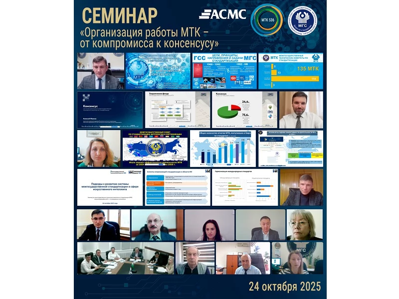 В соответствии с решением 67-го заседания МГС Бюро по стандартам, МТК 536 «Методология межгосударственной стандартизации» с привлечением Базовой организации государств - участников СНГ по подготовке, профессиональной переподготовке, повышению квалификации кадров в области стандартизации, метрологии, управления качеством и оценки соответствия (Базовой организации (АСМС) 24.10.2025 года был проведен семинар «Организация работы МТК – от компромисса к консенсусу».