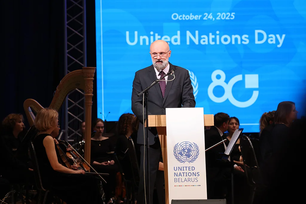От имени министра иностранных дел Беларуси к присутствующим обратился заместитель главы внешнеполитического ведомства Игорь Секрета, подчеркнув, что такое звучное празднование 80-летия ООН в Беларуси наглядно демонстрирует глубокое уважение к организации и подчеркивает ее особое место во внешнеполитических приоритетах государства.