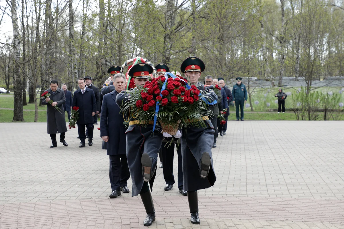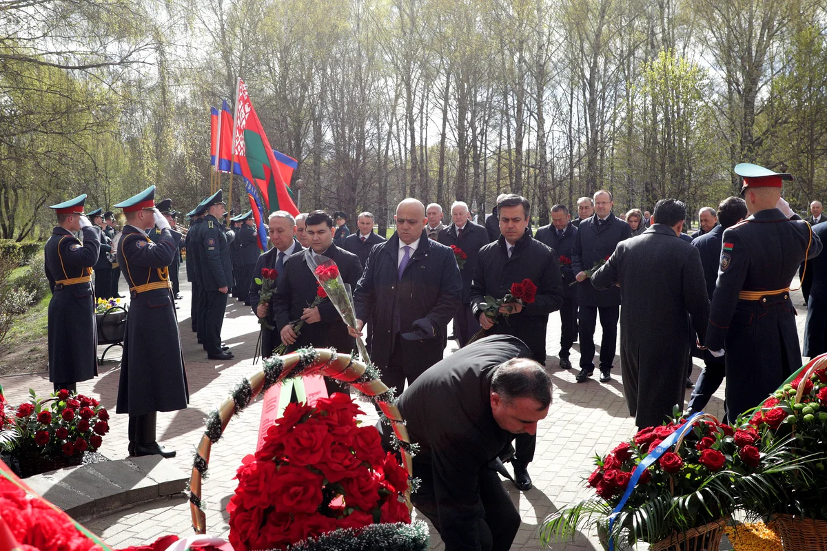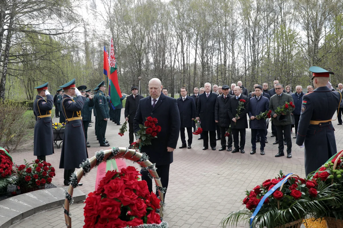 Мероприятие началось с возложения цветов к памятному знаку «Ахвярам Чарнобыля» в столичном парке Дружбы народов.