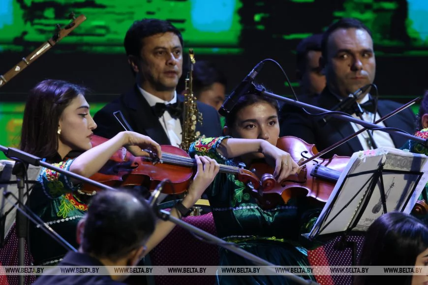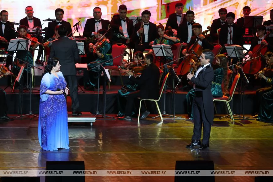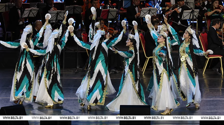 В концертной программе приняли участие народные и заслуженные артисты Таджикистана в сопровождении Государственного симфонического оркестра Исполнительного аппарата Президента Республики Таджикистан. Для белорусского зрителя подготовили как таджикские национальные мелодии, так и известные мировые хиты.