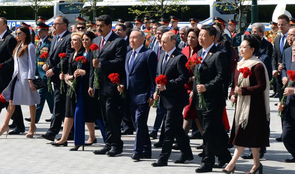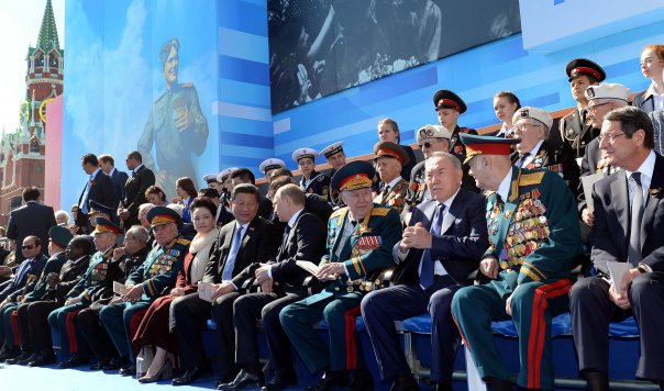 Нурсултан Назарбаев посетил военный парад на Красной площади, а также принял участие в церемонии возложения цветов к могиле Неизвестного солдата.