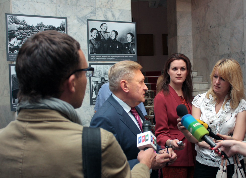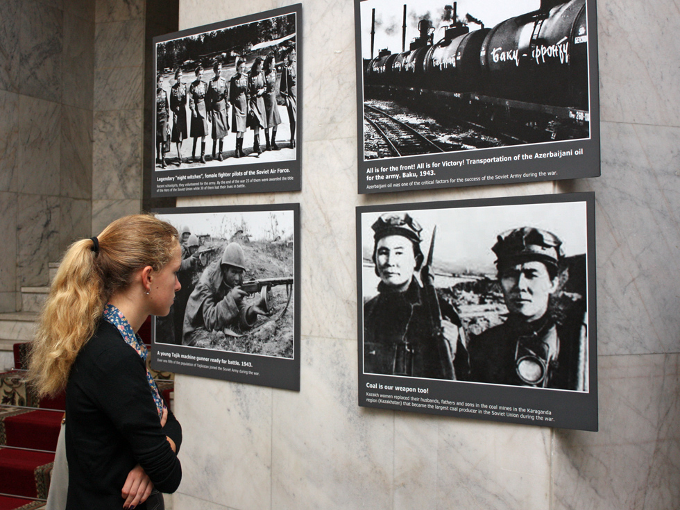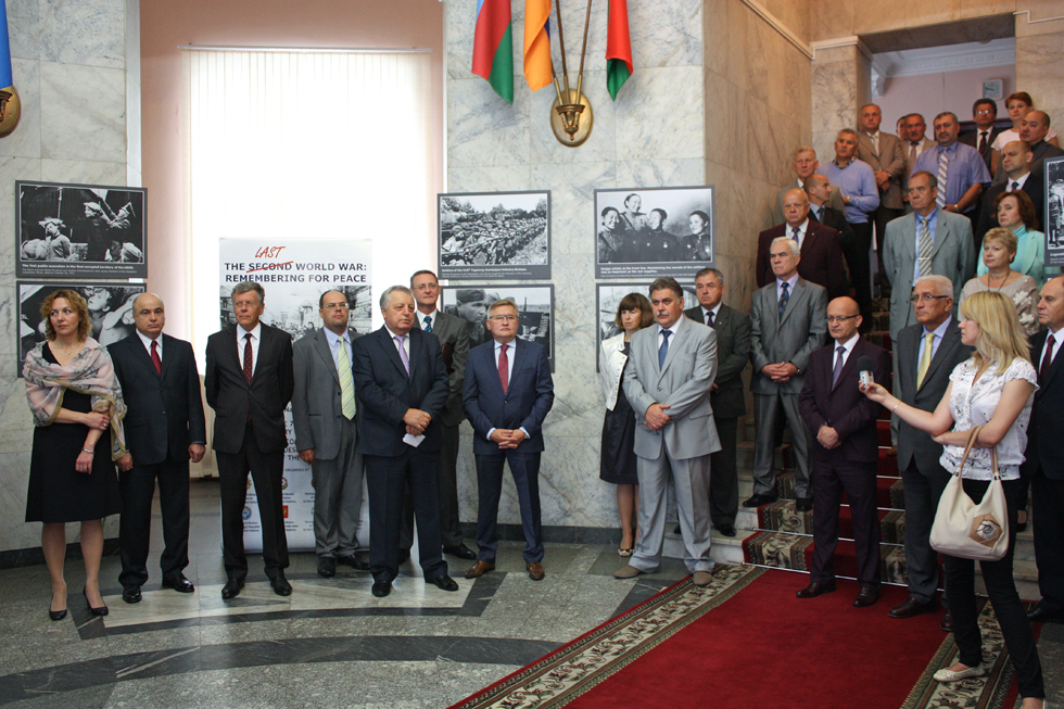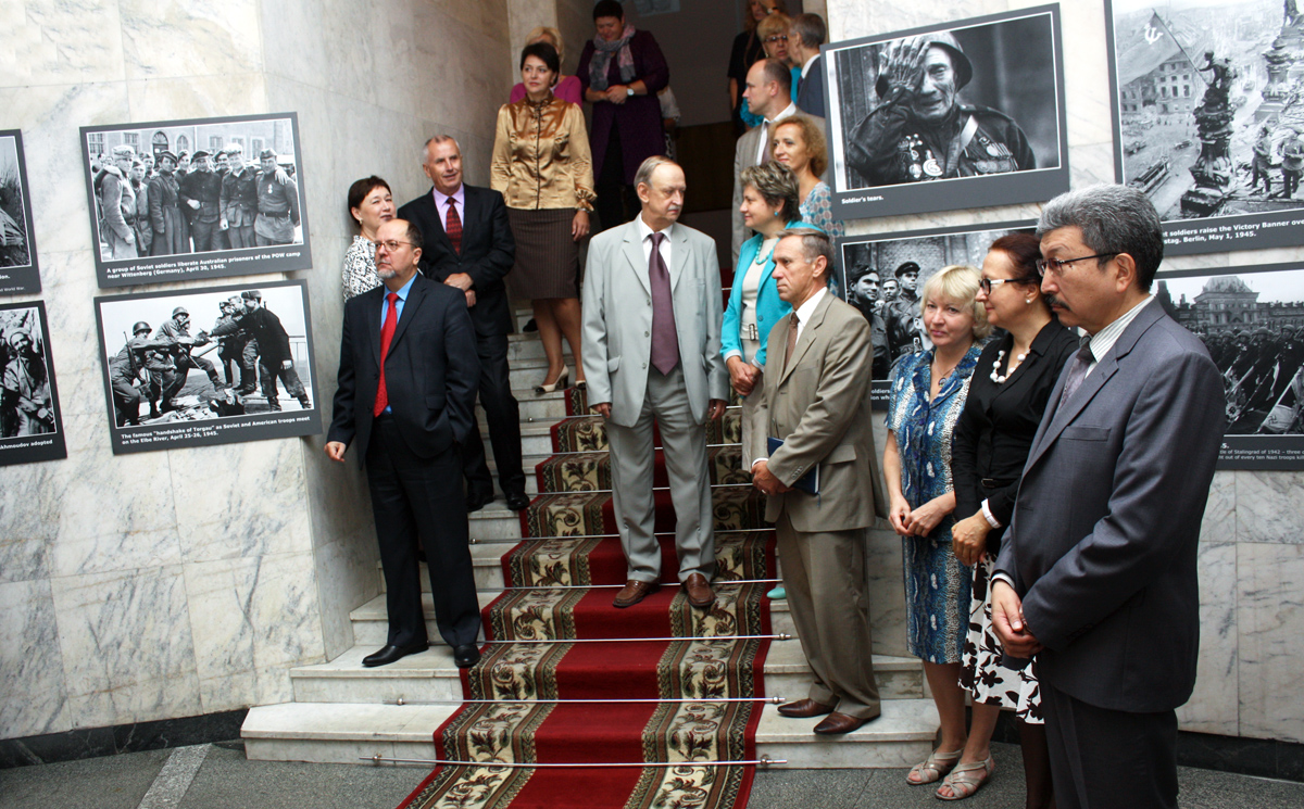 В. Гаркун особо подчеркнул, что эта уникальная фотовыставка, состоящая из памятных фотографий военных лет из разных республик бывшего СССР, была организована как совместный проект девяти государств Содружества: Азербайджана, Армении, Беларуси, Казахстана, Кыргызстана, России, Таджикистана, Туркменистана и Узбекистана.