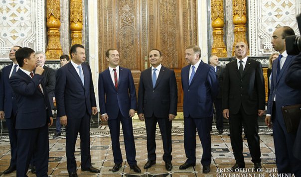 В заседании совета глав правительств участвуют премьер-министры Армении Овик Абраамян, Беларуси - Андрей Кобяков, Казахстана - Карим Масимов, Кыргызстана - Темир Сариев, России - Дмитрий Медведев, Таджикистан представляет премьер Кохир Расулзода.