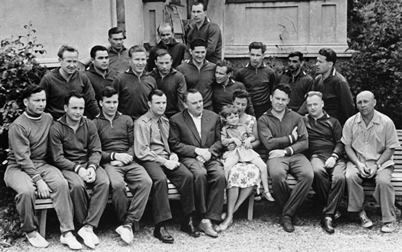 Первый отряд советских космонавтов. Марс Рафиков во втором ряду третий (слева направо)