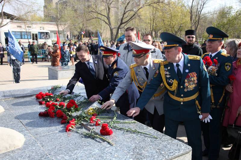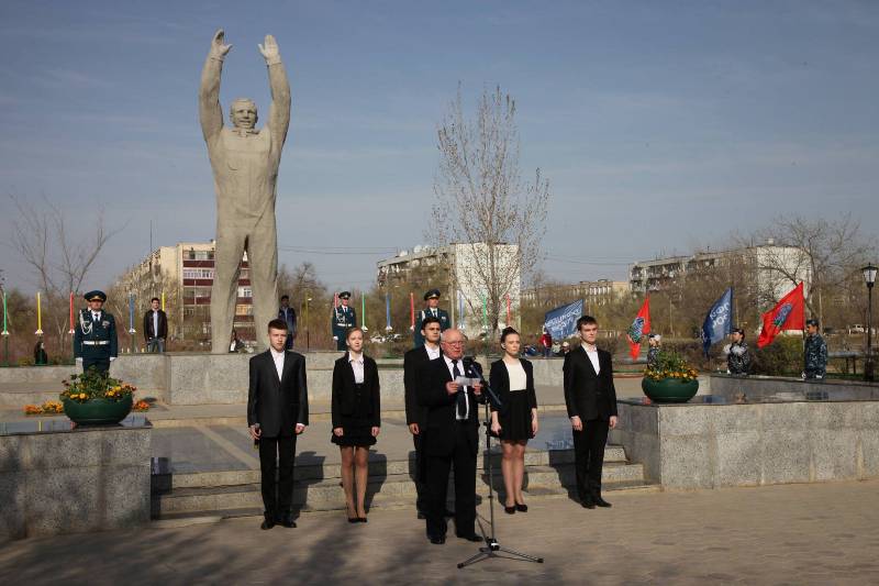 Жители и гости Байконура приняли участие в торжественном митинге у памятника Гагарину, где возложили цветы первопроходцу космоса. После этого байконурские школьники произвели традиционный запуск моделей ракет собственной сборки.