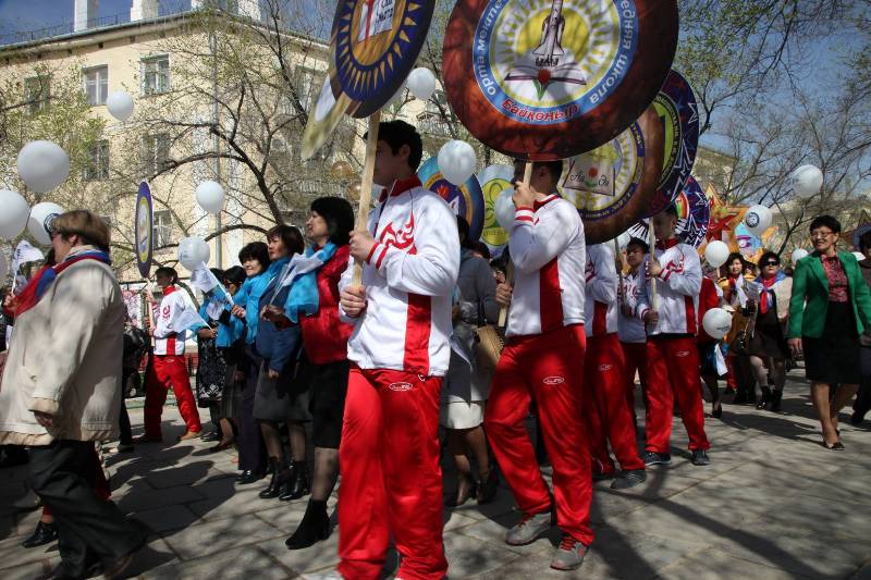 В праздничном шествии приняли участие предприятия Роскосмоса, городские организации, в числе которых были казахстанское представительство МВД РК в г. Байконыр, коллектив РГП «Инфракос» Аэрокосмического комитета МИР РК.