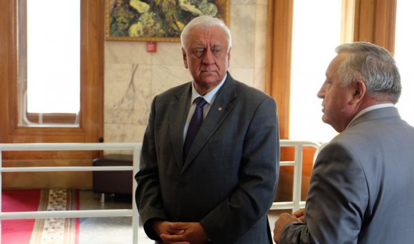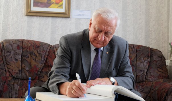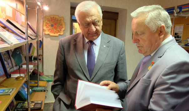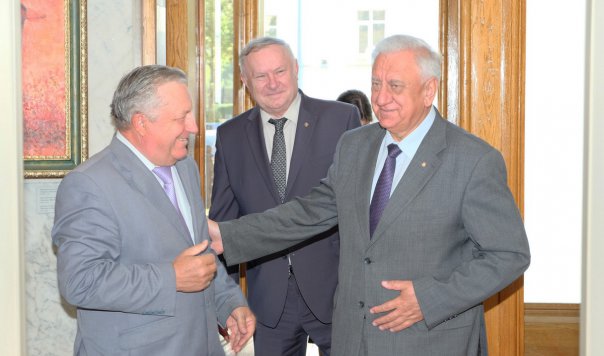 М.Мясникович торжественно вручил В.Гаркуну Почетную грамоту Национального собрания Республики Беларусь за заслуги в развитии межгосударственных и межпарламентских связей, большой вклад в формирование и реализацию социальной и экономической политики Республики Беларусь.