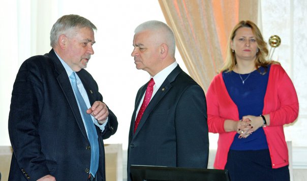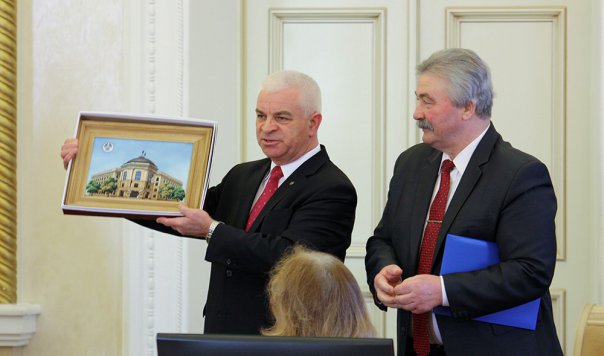 В начале заседания первый заместитель Председателя Исполнительного комитета – Исполнительного секретаря СНГ Виктор Гуминский вручил Грамоту Исполнительного комитета СНГ за многолетнюю и плодотворную работу по укреплению Содружества Независимых Государств Постоянному полномочному представителю Республики Молдова при уставных и других органах Содружества, Чрезвычайному и Полномочному Послу Республики Молдова в Республике Беларусь Георгию Хиоарэ в связи с завершением его дипломатической миссии в Беларуси. Коллеги постпреда Молдовы сердечно поблагодарили его за совместную работу.