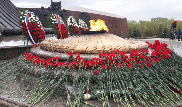 В Астане в преддверии 9 мая прошел Международный форум Победителей «Великая Победа, добытая единством». Его работа началась с торжественной церемонии возложения венков к вечному огню на площади защитников Отечества. Дань памяти погибшим на фронтах Великой Отечественной отдали члены делегаций из стран СНГ. Астана впервые принимает у себя подобный форум. Начиная с 2010 года, он проходил в городах России и в прошлом году в Минске. Участникам встречи напомнили – на фронт из Казахстана ушли воевать больше 1 миллиона 300 тысяч человек, погиб каждый третий из них. Всего же эта страшная война унесла жизни 27 миллионов человек.