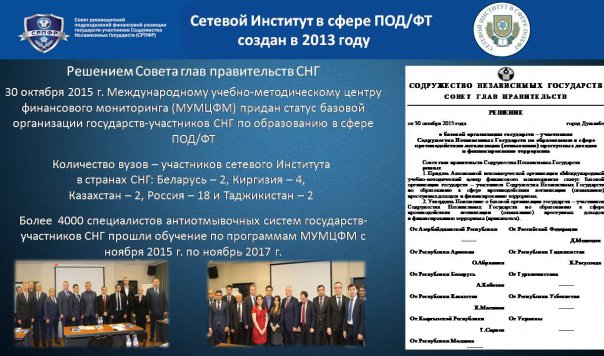 Международного учебно-методического центра финансового мониторинга Российской Федерации, являющегося базовой организацией государств – участников СНГ по образованию в сфере противодействия легализации (отмыванию) преступных доходов и финансированию терроризма.