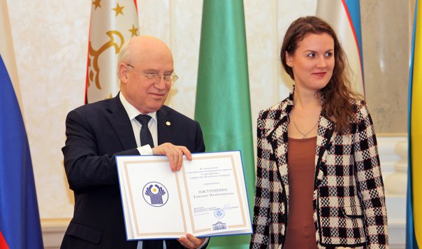Затем состоялась церемония награждения грамотами представителей СМИ. За большой вклад в популяризацию интеграционных процессов на пространстве Содружества Сергей Лебедев вручил Грамоты Исполнительного комитета СНГ обозревателю отдела политической и социальной информации БЕЛТА Татьяне Пастушенко и редактору дирекции информационного и общественно-политического вещания Первого Национального канала Белорусского радио Светлане Сухарко.