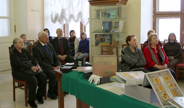 На открытии выставки Галина Анатольевна Райкова, заведующая отделом межбиблиотечного взаимодействия с библиотеками России и стран СНГ РГБ, представила краткий обзор библиотечных связей РГБ и национальных библиотек стран постсоветского пространства.