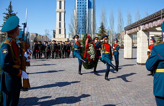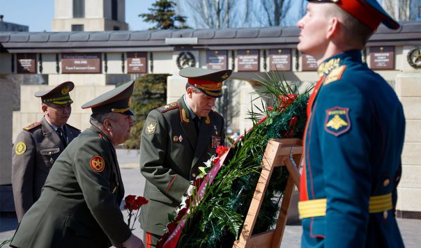 Кроме того, начальники Генштабов возложили венок и цветы к Вечному огню в Парке Победы.