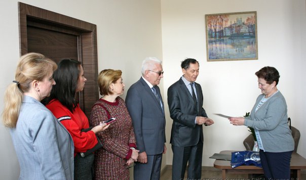 Сертификат о переводе денежных средств и канцелярские принадлежности вручил руководству Центра во время визита делегации Исполкома 26 апреля заместитель Председателя Исполнительного комитета – Исполнительного секретаря СНГ Агыбай Смагулов.