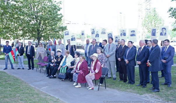 На митинге присутствовали также послы и постоянные представители государств-участников СНГ, представители Московского района Минска, молодежных и общественных организаций, азербайджанской диаспоры, ветераны войны.