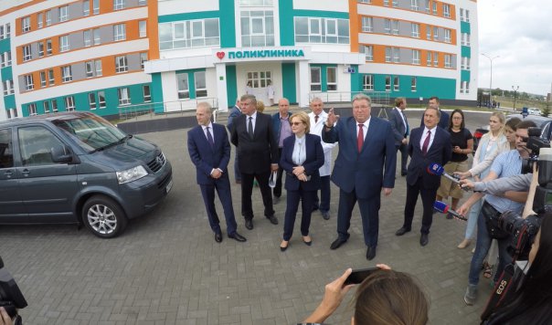 Министр здравоохранения России Вероника Скворцова до начала заседания посетила новую поликлинику во втором микрорайоне жилого района «Юбилейный» - на этом объекте сейчас завершаются строительно-монтажные работы. Поликлиника рассчитана на 500 посещений в смену, ввод ее в эксплуатацию позволит обеспечить взрослое население нового жилого района, построенного к чемпионату мира по футболу, доступной медицинской помощью.