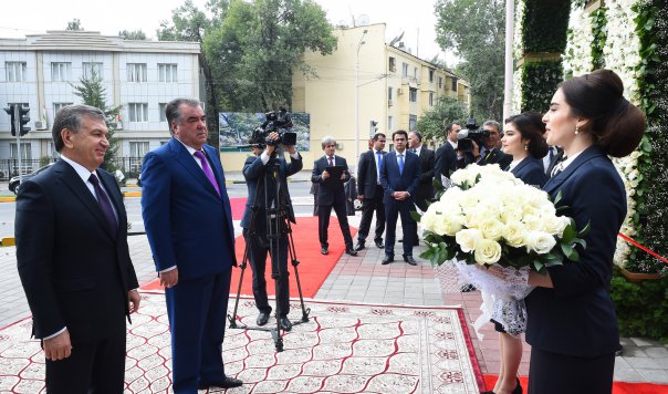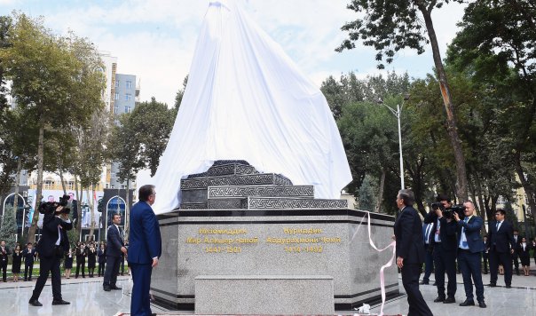 "Президенты Шавкат Мирзиёев и Эмомали Рахмон в Душанбе торжественно открыли парк имени Низомиддина Алишера Навои и памятники великим поэтам-мыслителям Нуриддину Абдурахману Джами и Низомиддину Алишеру Навои в знак дружбы народов Таджикистана и Узбекистана", - уточняет пресс-служба.